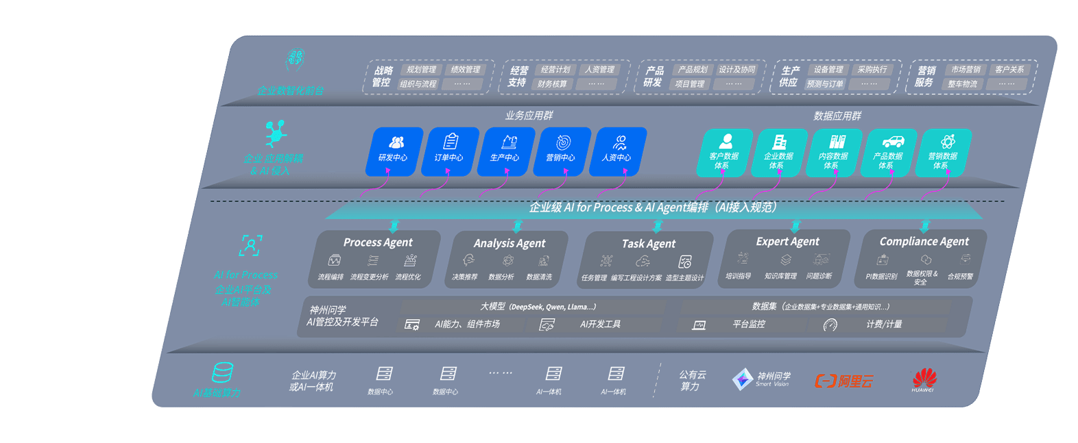 端到端的一站式AI工作空间深度融合了从企业战略规划到日常经营的全流程业务板块,,,定向解决车企内部领域多、、部门多、、链条长、、、场景碎片化等难题,,,,支持车企快速构建以AI为核心的生产力写作体系,,实现任务执行与AI能力的无缝集成与交互
